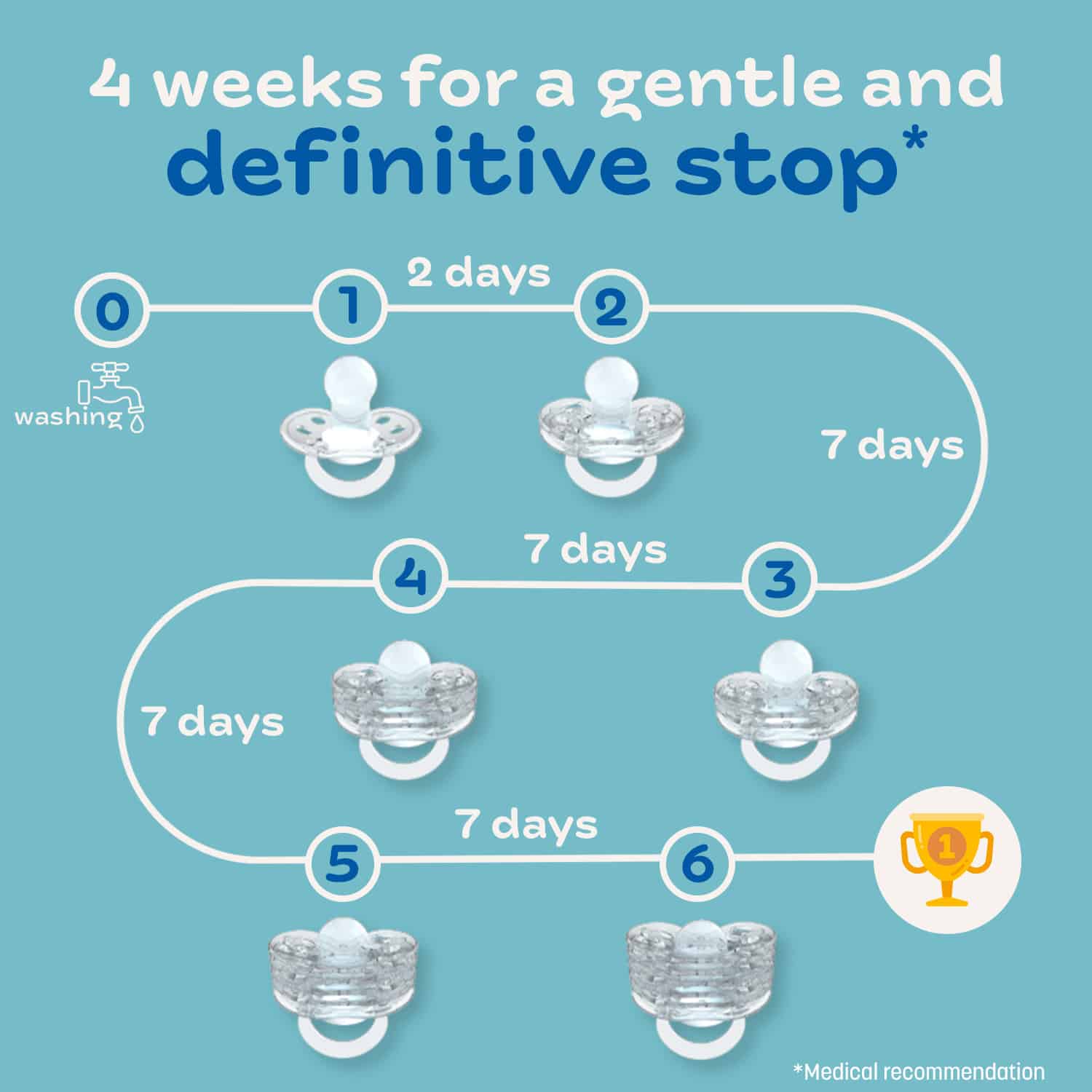 These weaning shields help wean your child off their dummy, little by little, by reducing the sucking habit in 5 stages.